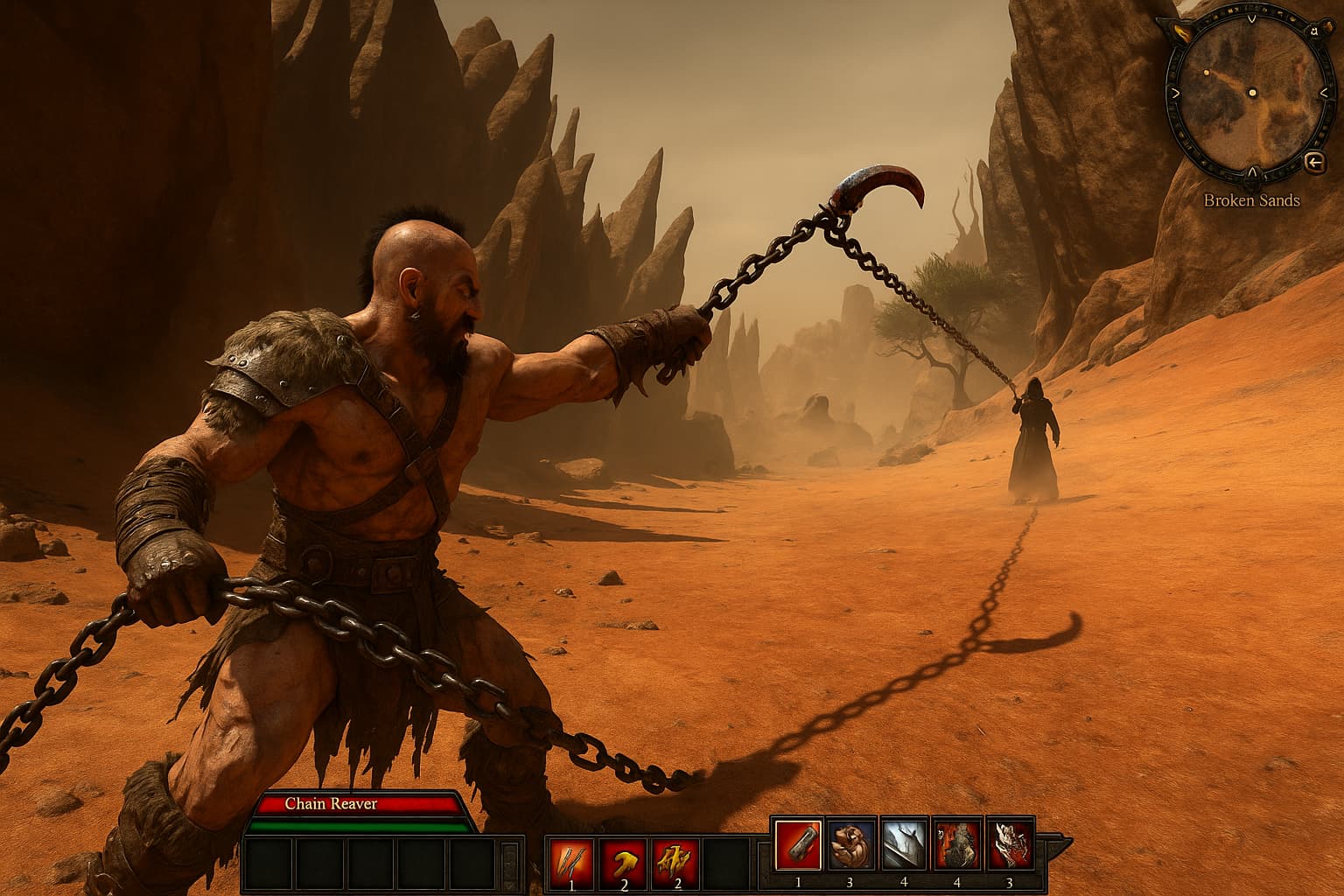 A Chain Reaver does not duel with honor. They drag you down, choke you in dust, and tear you apart for the crowd that roars inside their skulls. Even in the open battlefield, every fight is still an arena—and only one leaves standing.