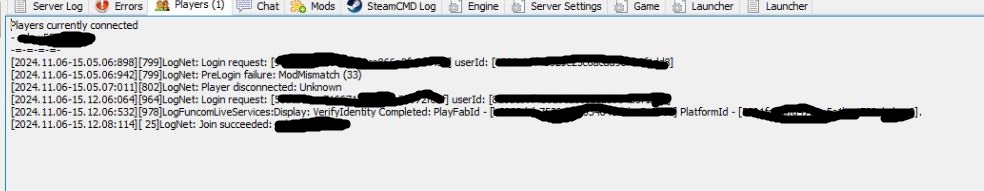 Edit: The above was obtained because I was checking news about every half hour during that period of time. I have a dual monitor configuration so I had news on one and connected to the game server on the other. It is now about 04:37UTC. Looking at the player tab before going to bed, I see that it appears to be all caught up with all join/disconnect entries and proper player count displayed on the tab. When it caught up I do not know.