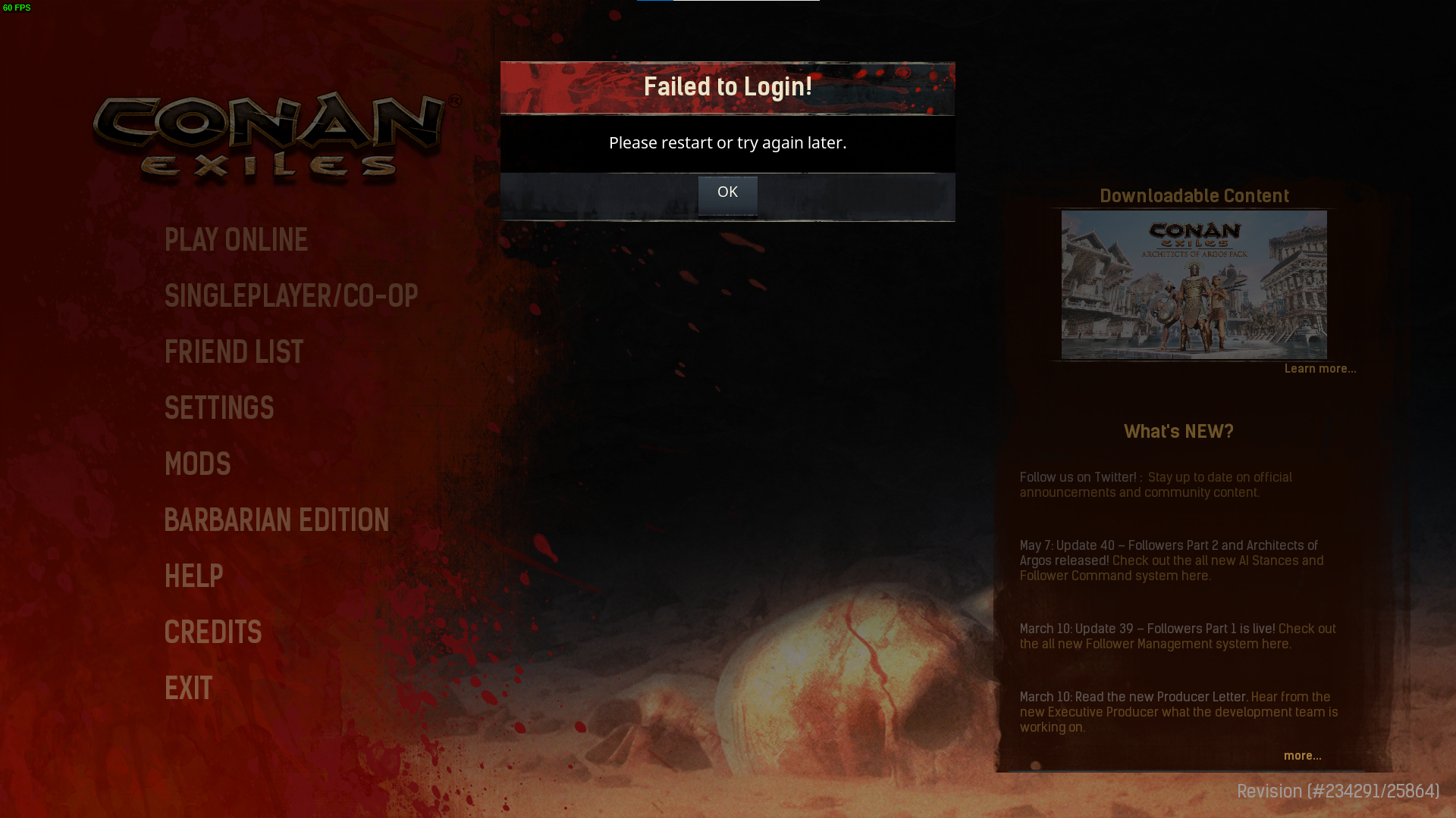 Failed to Login! Please restart or try again later