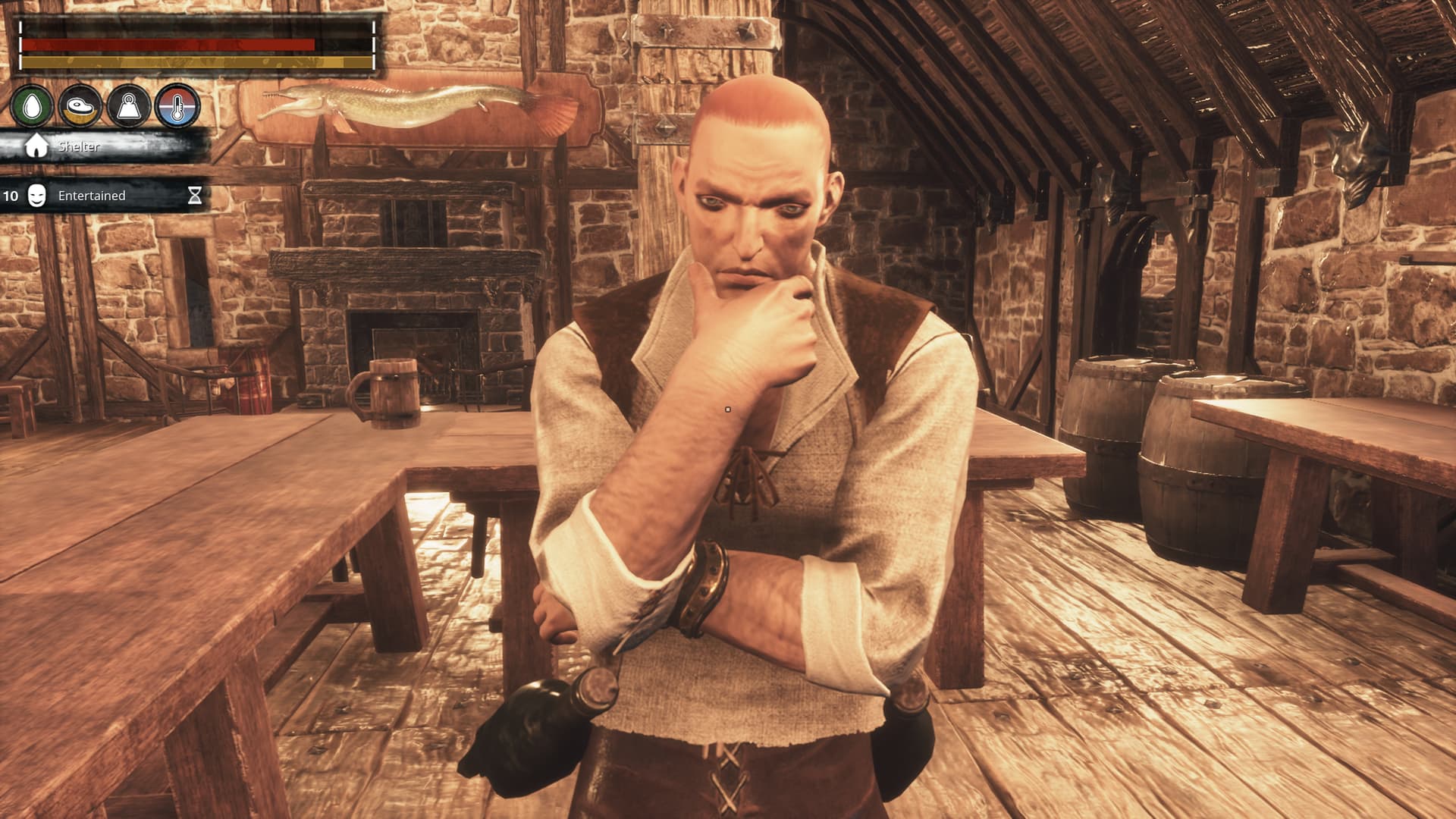 On Siptah, Llor the Accursed (Tier-4 armourer, shield wright) has the typical bosom of the Accursed (all that fell sorcery evidently gathers near the ribs for the ladies) and eschews upper garments.