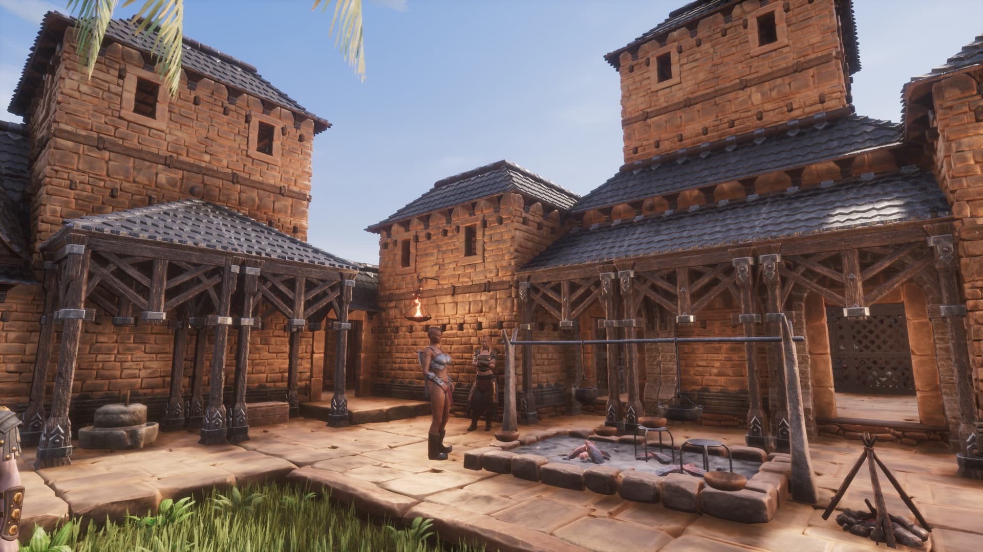 Above the great hall are among other things, my personal chambers. It would be cool if sunlight didn’t shine through all the structures, so lighting would be cool like this all the time, and not just during the night. Some of the battlepass items are really cool looking, particularly the skull braziers.