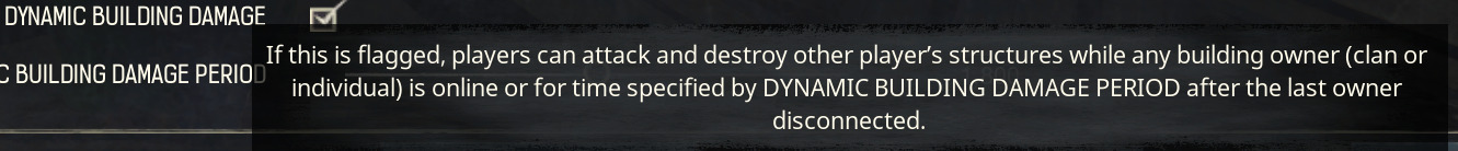 That is going to not “Restrict PVP Building Damage times” at all. - thus it becomes 24/7. If DBD is on then the player also has to be on-line before you can damage their base - as I understand it. If DBD is unchecked like in the example above, then you can damage their base no matter if they are on-line or off-line - again, as I understand it.