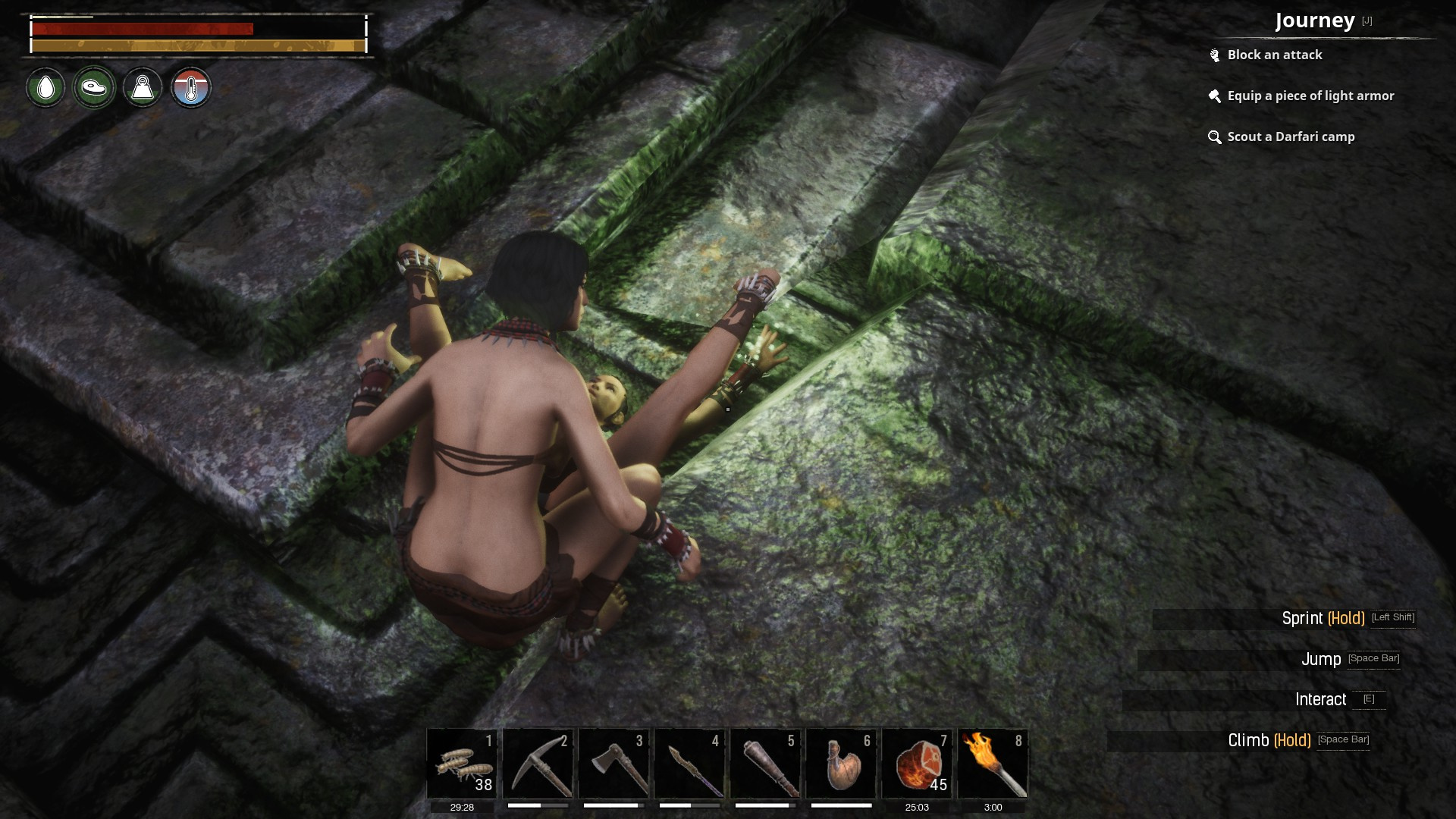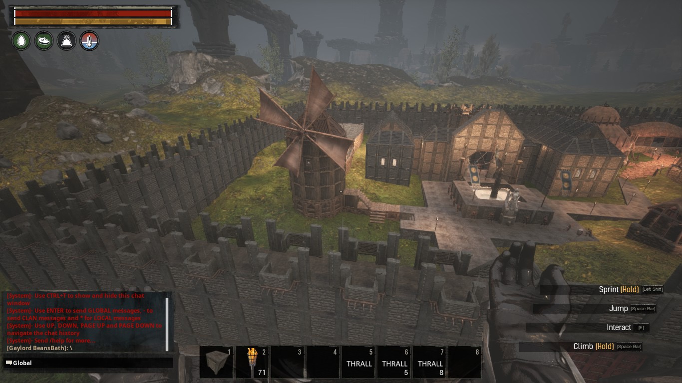 I was just learning the game and ran into a pack of wolves that chased me until I could go no further. I remembered the statement “climb to get out of trouble” posted on the loading screen. When I got near the top this is what was waiting for me.